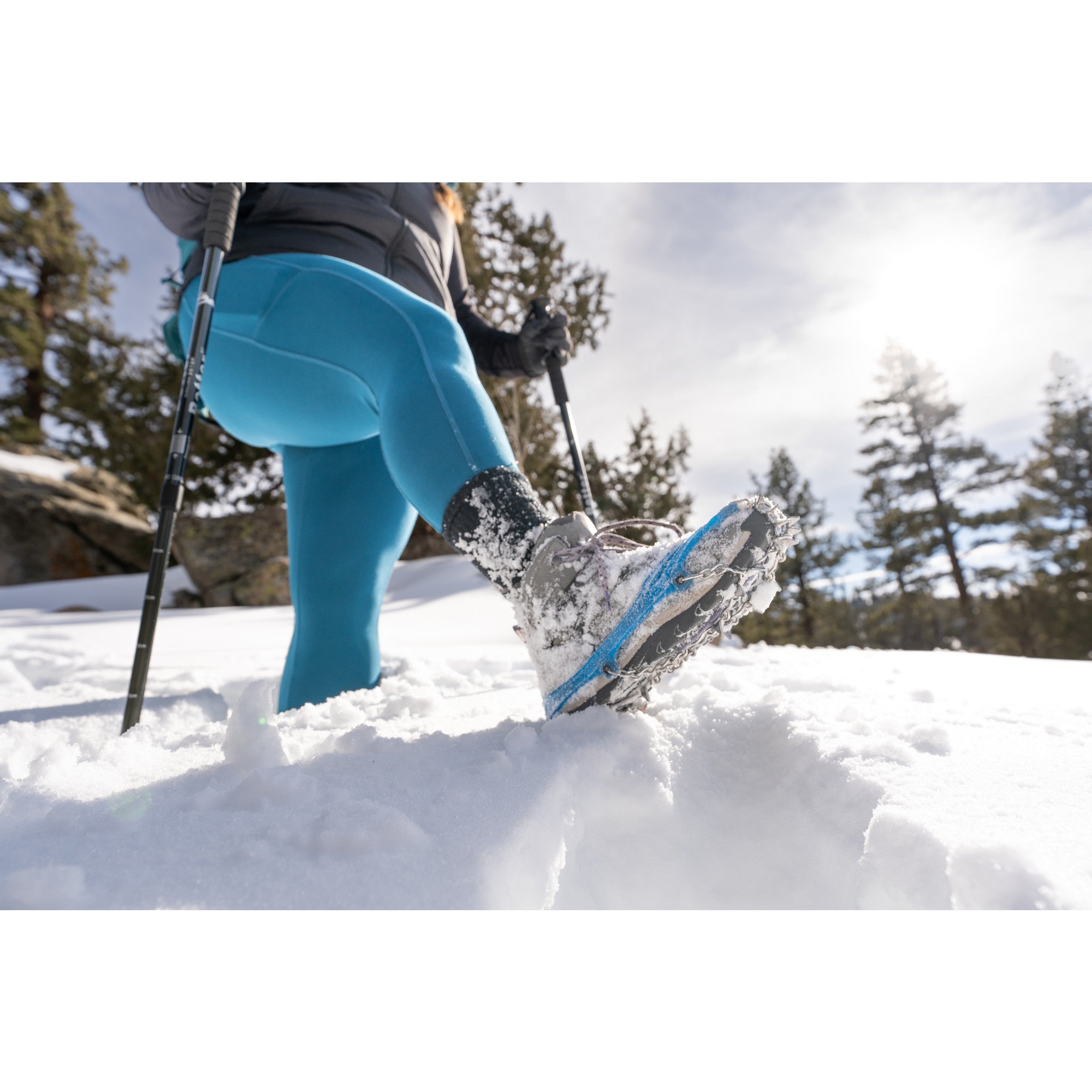 The YakTrax Ascent is an aggressive ice and snow traction device specifically designed for back country excursions and wilderness exploration. Its innovative design features six forward-facing toe spikes for a sure foot on steep ascents in slippery winter conditions. The thick Elastomer band stretches to fit securely over your favorite pair of boots. Designed to withstand any terrain with heavy-duty stainless-steel spikes that bite into ice and snow and durable enough to last season after season. Includes a carrying bag to take you from one adventure to the next.